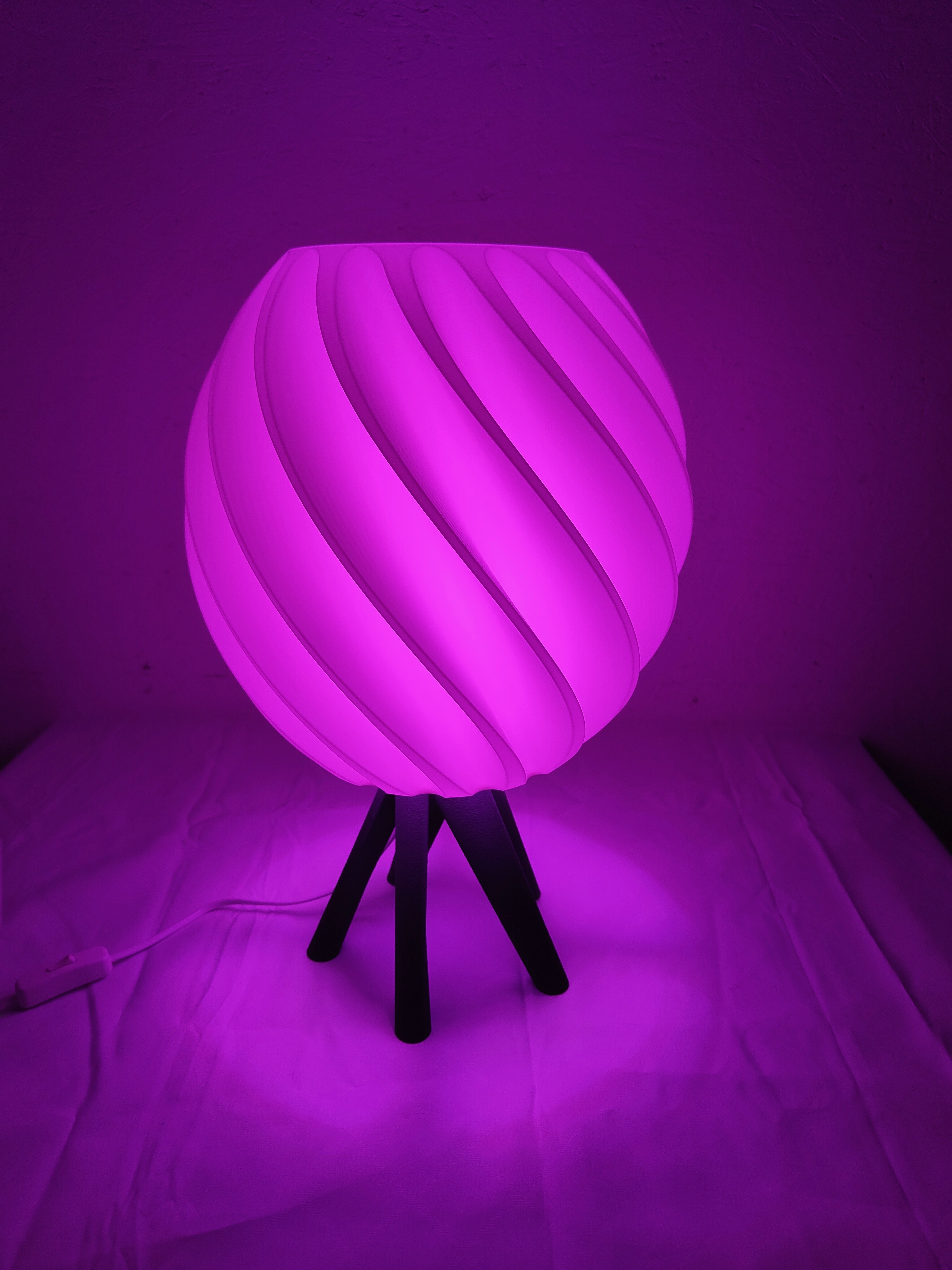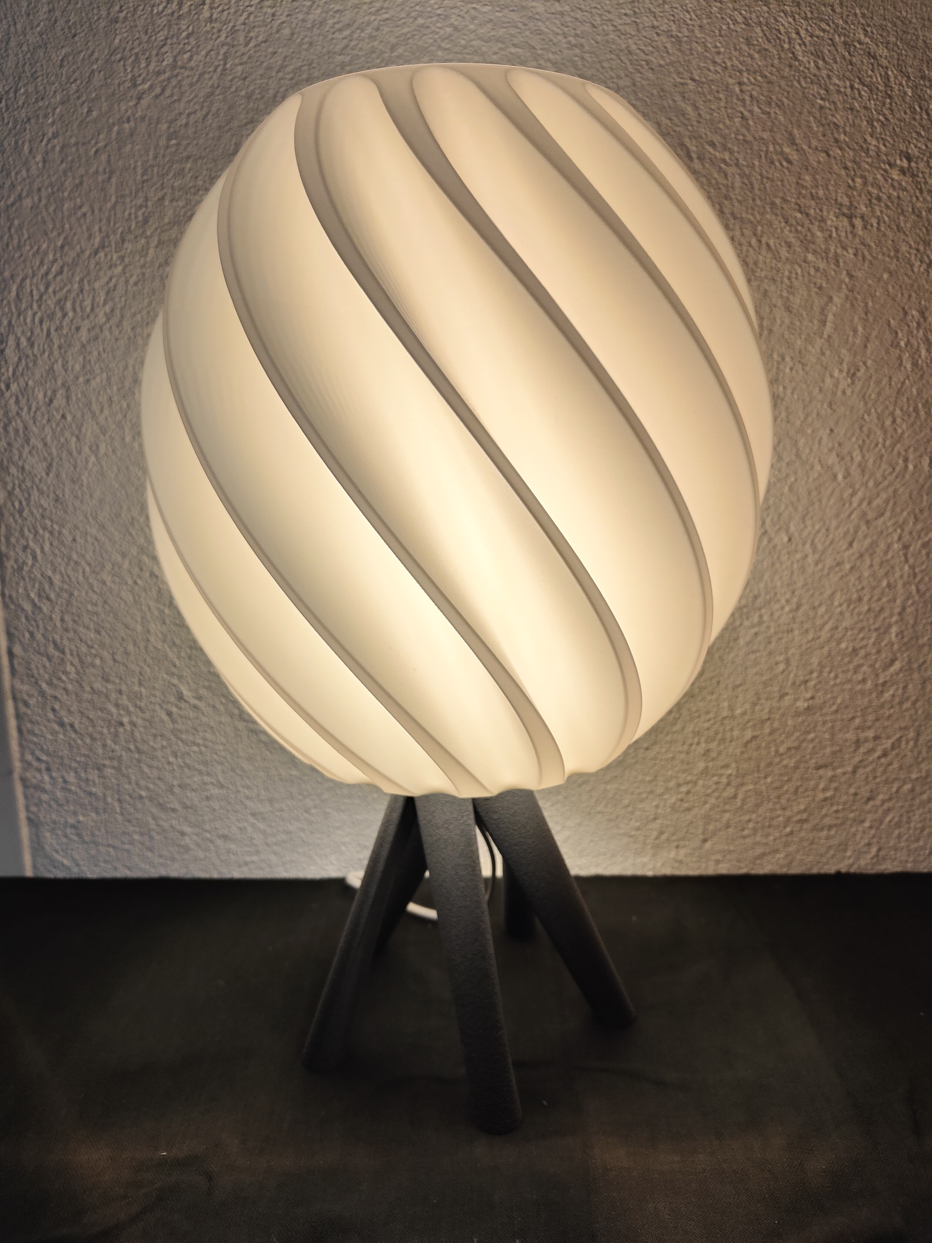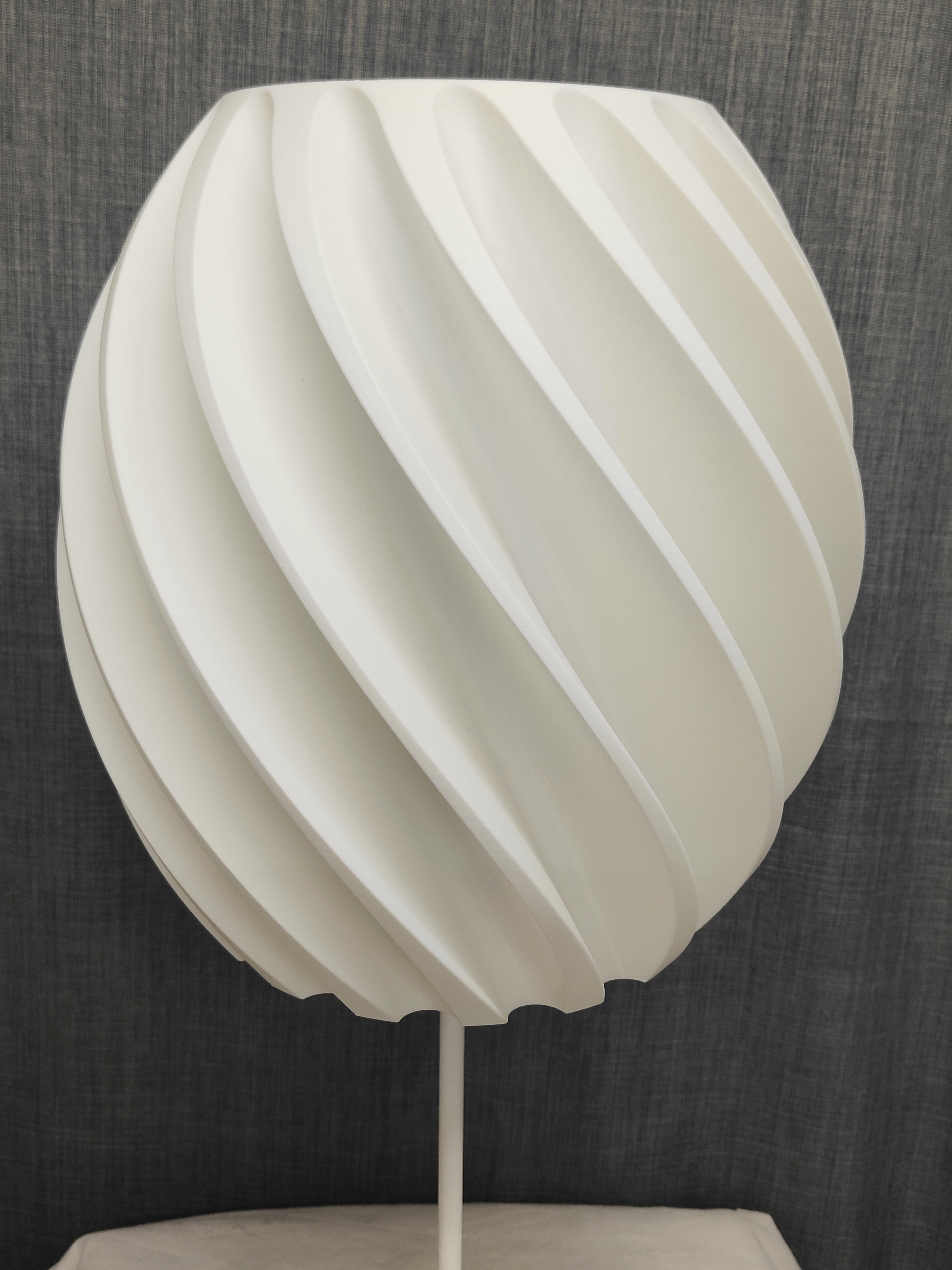 Rundum 3D-gedruckt: Sowohl der skulpturale Lampenschirm als auch der passende Sockel werden direkt in unserem Atelier gefertigt. Die organische Form sorgt für ein lebendiges Licht- und Schattenspiel.