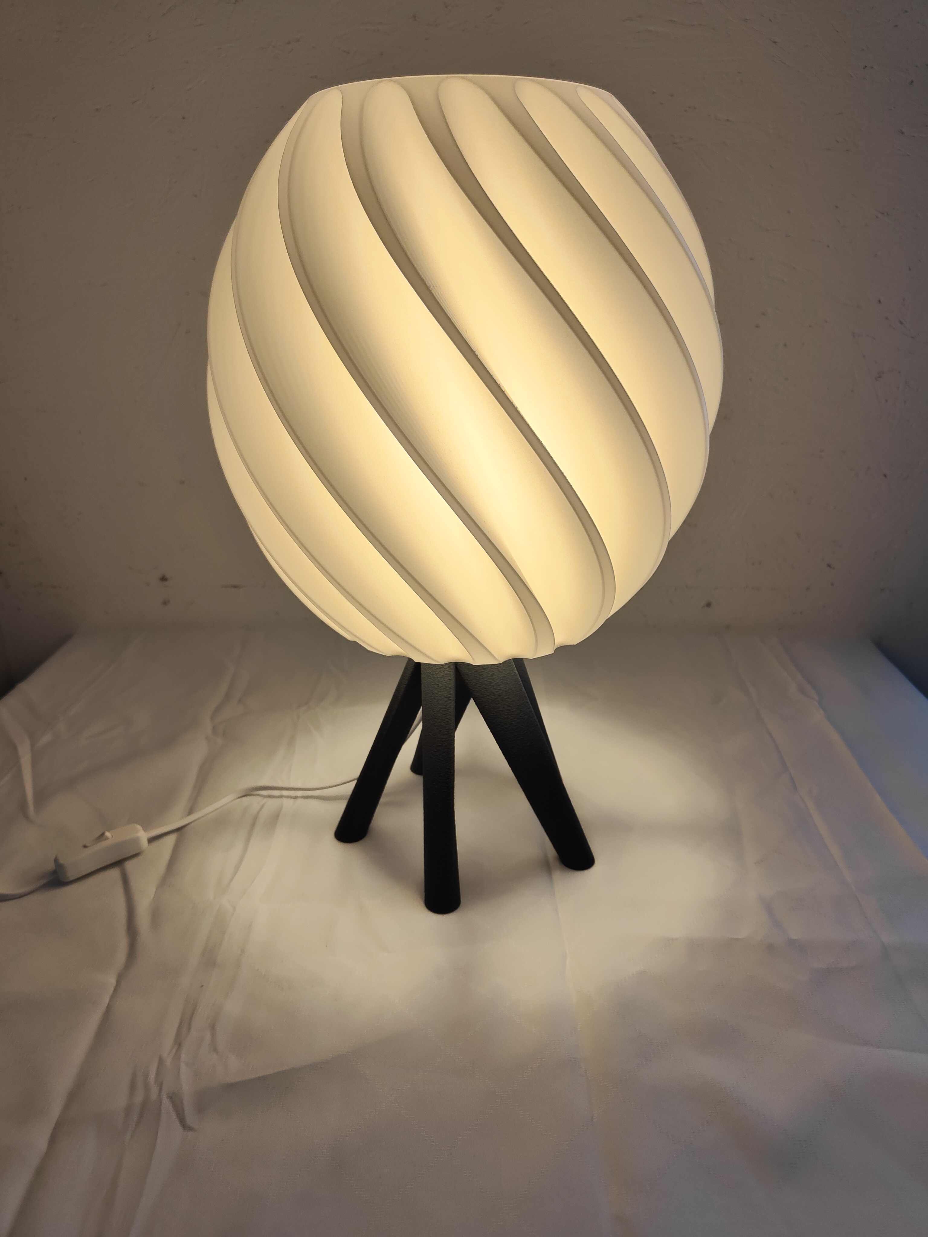 Technik mit Komfort: Beide Komponenten werden präzise in unserem Atelier 3D-gedruckt. Die integrierte E27-Fassung und das ca. 1,8m Meter lange Kabel mit Kippschalter garantieren eine einfache Handhabung.