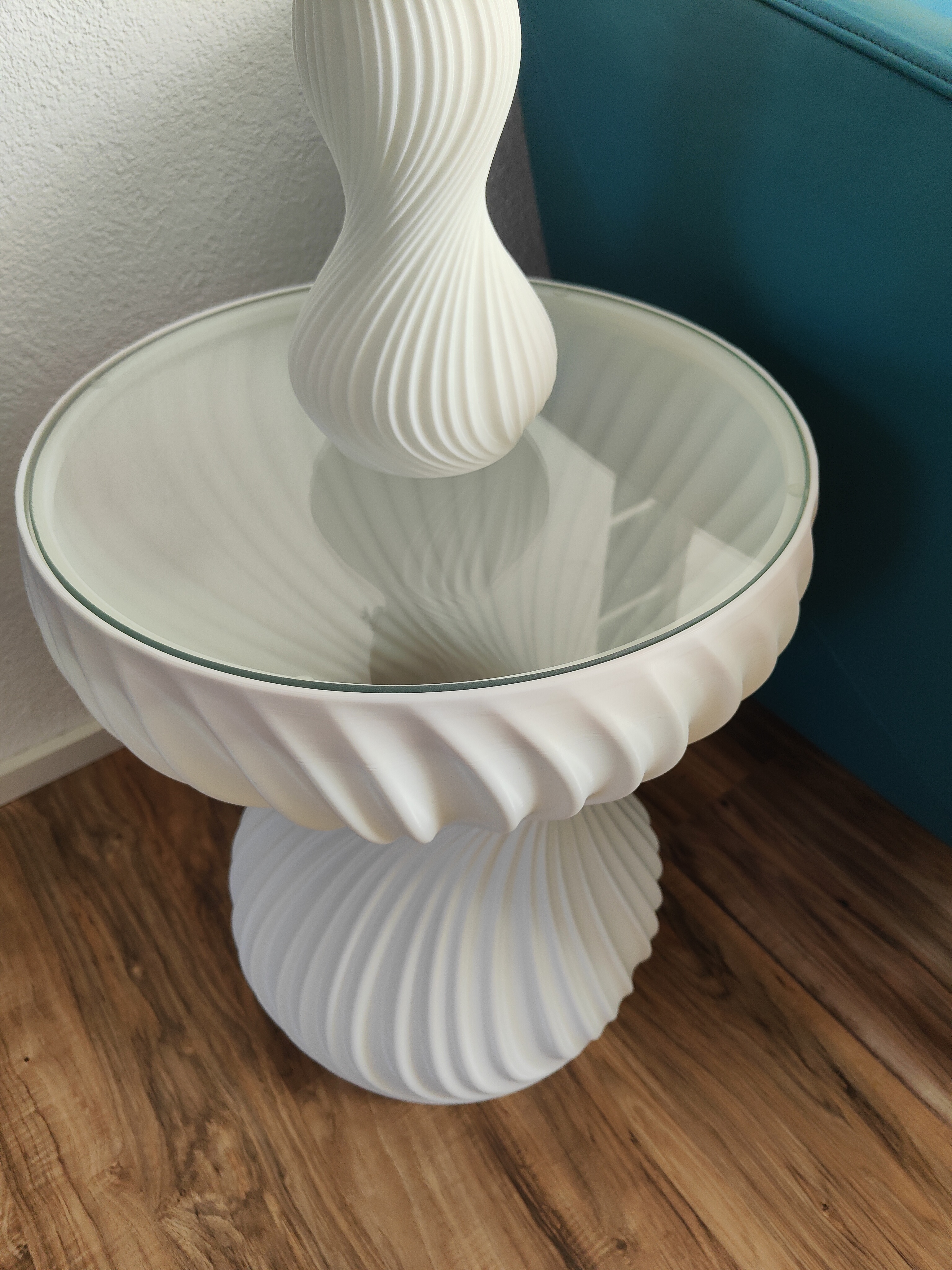 Sicherheitsglas (8 mm): Schwebende Leichtigkeit mit freiem Blick auf die innere Spiralgeometrie.